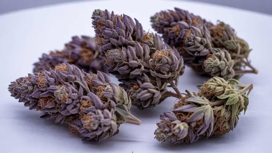 The genetics behind the Banana Milk cannabis strain play a significant role in its effects and taste. Banana OG contributes sweet banana-forward terpenes, stress relief, and classic indica body effects. Purple Punch F2 adds grape-like sweetness, enhanced sedation, and dense, colorful buds.
