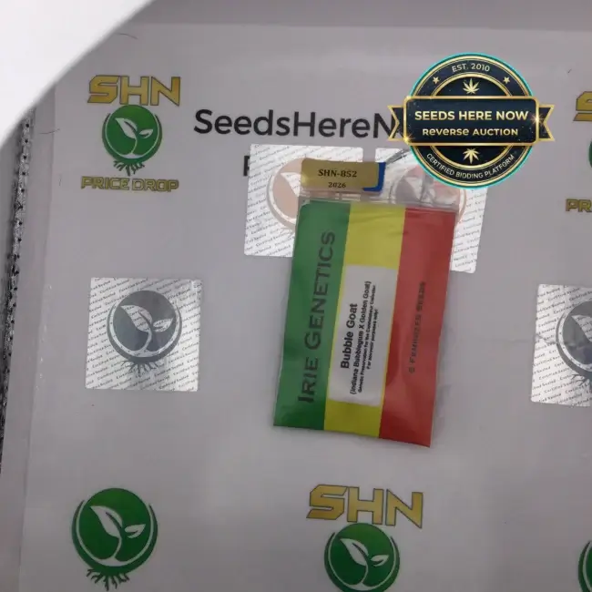 These seeds come from our personal collection—genetics we have carefully acquired and preserved over 15 years in the industry. When you grab Bubble Goat from Seeds Here Now, you are not just buying seeds; you are getting a piece of cannabis history that we have personally curated and stored with care. We have worked with IRIE GENETICS for years and stand behind the quality of every pack.