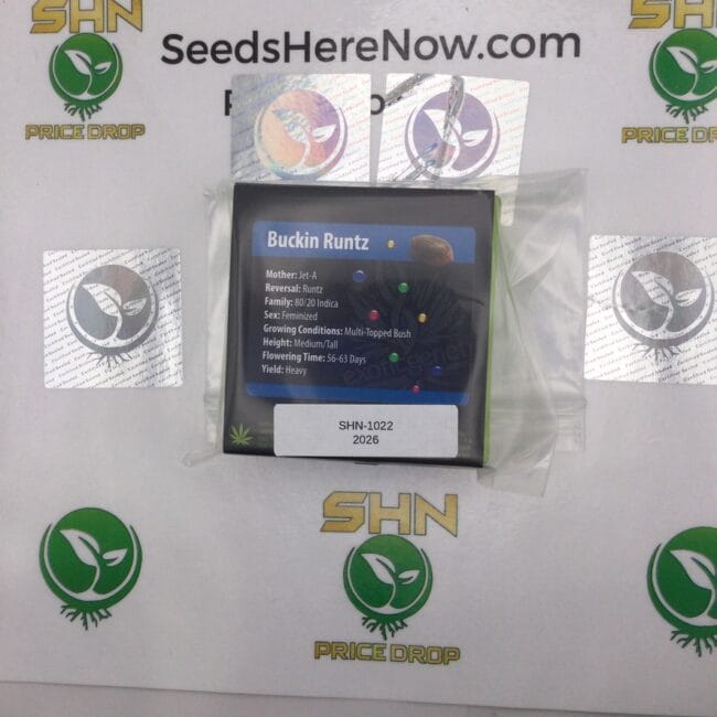 Buckin Runtz pairs JET-A | one of Exotic Genetix's most sophisticated proprietary lines | with Runtz, producing a balanced feminized hybrid that bridges diesel fuel terpenes and candy-sweet Runtz genetics in a 60-day flowering package. James Bean acquired these three lots and placed them in the vault. Sealed since acquisition. Available now for the first time.