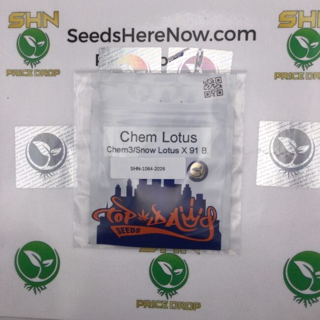 Chem Lotus is one of the most intriguing entries in the Top Dawg Vault Collection. Chem 3/Snow Lotus crosses against a 91 BX male in a pairing unexpected even by JJ's standards—Snow Lotus brings an almost meditative sweetness that stands in fascinating contrast to the sharp, acrid edge of the Chem and 91 BX lineage. This hybrid cannabis seed opens the terpene profile into something floral, complex, and unusual without losing the Chem foundation. For a more direct 91 Chem expression, see Sour 91 3.0.