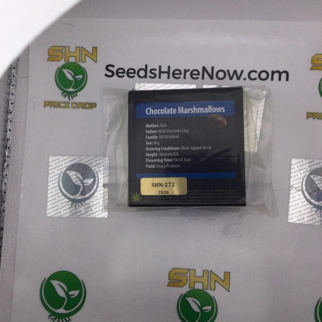 Chocolate Marshmallows is off the market. Exotic Genetix retired this line | a 50/50 hybrid pairing Gorilla Glue #4's dominant resin production and fuel terpenes with the mint and chocolate sweetness of Mint Chocolate Chip. James Bean acquired this pack before it disappeared and placed it in the vault. Sealed since acquisition. Being made available now because genetics that get retired deserve one more chance to be grown.