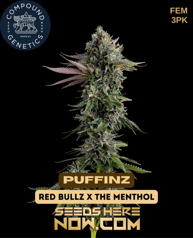 Listen up. If you’re bored with middle-of-the-road strains and want something with kick—some plant that doesn’t just whisper “energy” but absolutely shouts it—Puffinz is your ticket out of blandsville. Seriously, after more than a decade neck-deep in sticky genetics, I haven’t found many strains that walk the talk like this one. Born from Compound Genetics (who don’t mess around), Puffinz feminized seeds blend Red Bullz and The Menthol for that rare daytime high: big on spark, mellow on edge, and packing enough flavor to make even your most jaded buddy raise a brow. You don’t need to be a greenhouse wizard, either—she’s “moderate” to grow, which is code for “don’t screw up the basics.” Run her right and watch your grow tent become the canna-club’s favorite Zoom background.