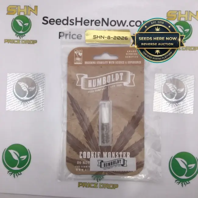 These seeds come from our personal collection—genetics we have carefully acquired and preserved over 15 years in the industry. When you grab Cookie Monster from Seeds Here Now, you are not just buying seeds; you are getting a piece of cannabis history that we have personally curated and stored with care. We have worked with Humboldt Seed Company for years and stand behind the quality of every pack.