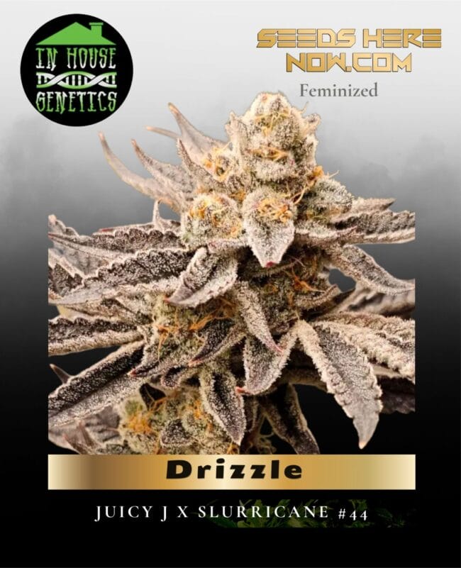 Juicy J and Slurricane #44 contribute to Drizzle's robust structure and high resin production. The influence of Slurricane #44 is evident in its terpene-rich profile and consistent flowering behavior, while Juicy J enhances the yield and overall vigor.