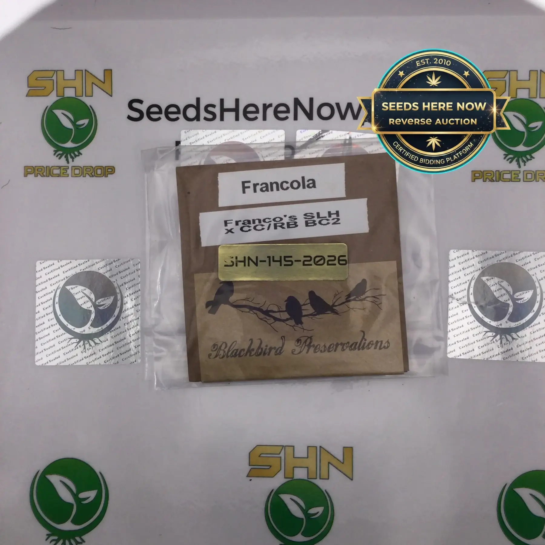 Francola by Blackbird Preservations comes straight from the Seeds Here Now personal vault—a collection carefully built over 15 years of sourcing and preserving the best cannabis genetics available. These seeds represent years of careful storage, trusted breeder relationships, and a deep passion for preserving exceptional cultivars. Now, we are opening the vault and making these rare packs available to growers everywhere.