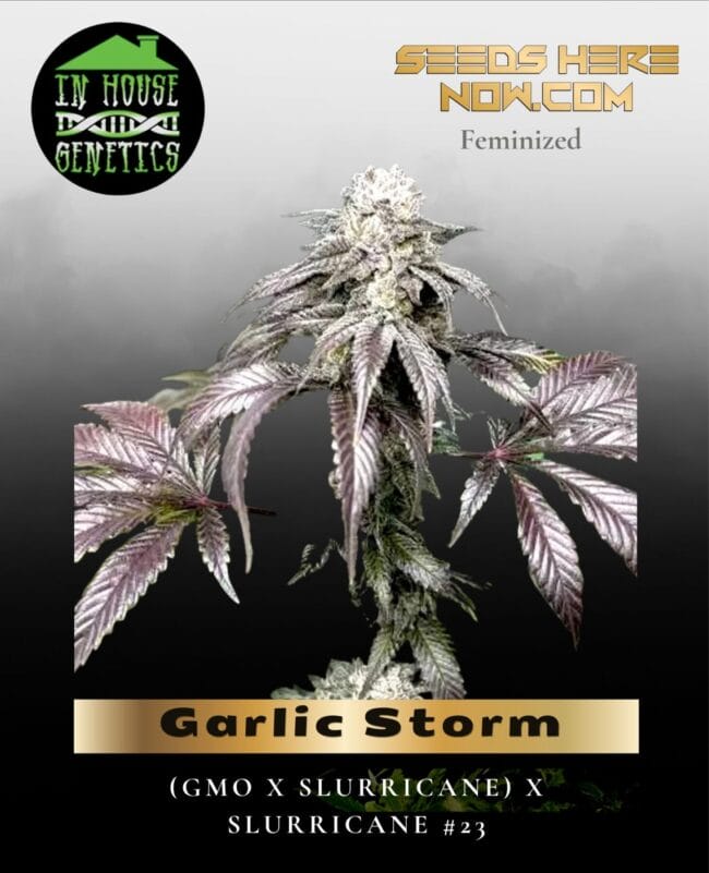 Garlic Storm seeds from In House Genetics boast GMO x Slurricane lineage. High THC and robust flavors make this strain a standout. Get yours now.