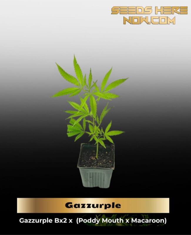 Gazzurple combines Gazzurple Bx2 with (Poddy Mouth x Macaroon). That mix leans into candy-meets-gas with structure that can handle weight. The Gazzurple Bx2 side brings color, candy grape, and sticky resin. Poddy Mouth x Macaroon layers in doughy sweetness and that diesel-fuel edge you smell from across the room. The result? Strong lateral branching, thick tops, and consistent internodes that make training simple.
