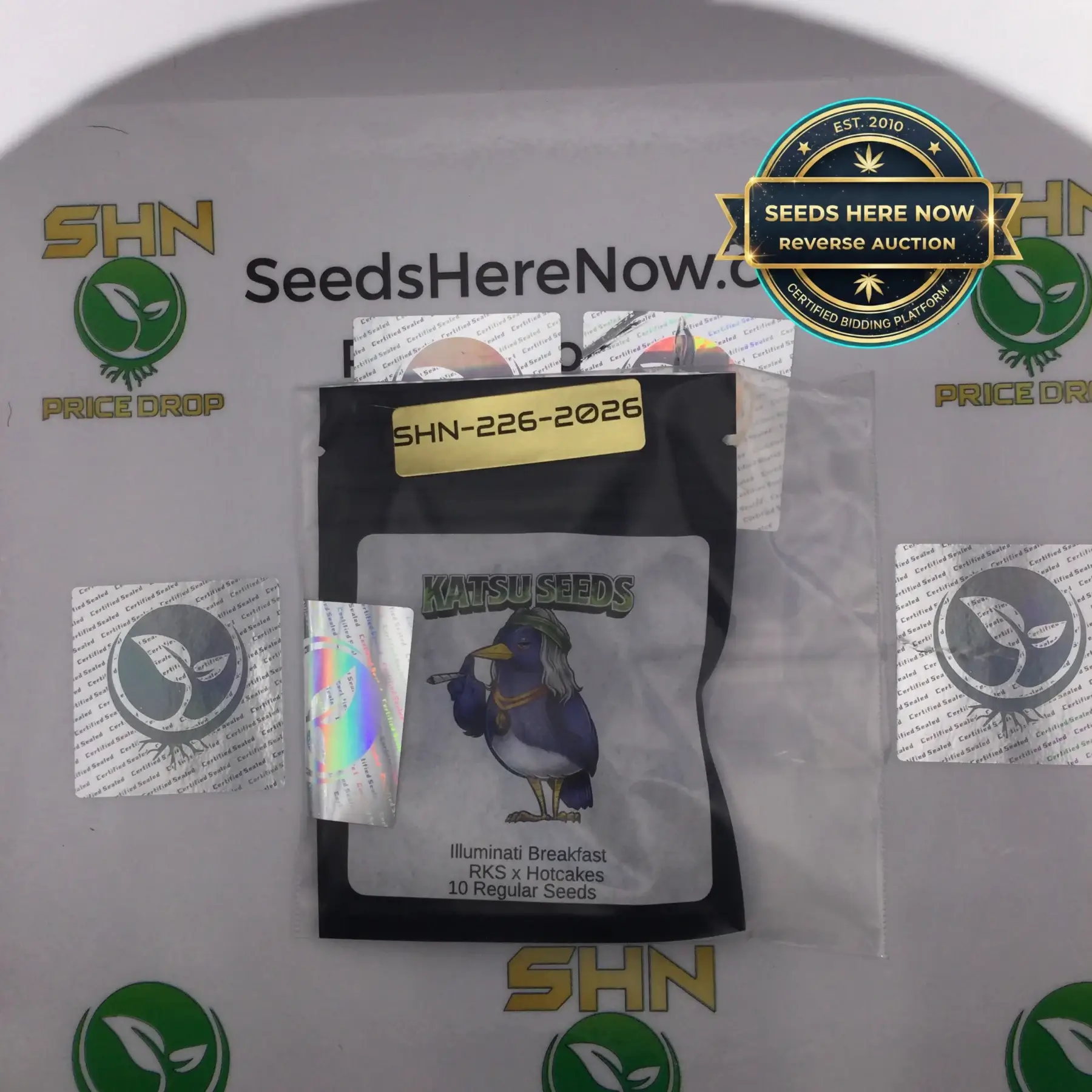 These seeds come from our personal collection—genetics we have carefully acquired and preserved over 15 years in the industry. When you grab Illuminati Breakfast from Seeds Here Now, you are not just buying seeds; you are getting a piece of cannabis history that we have personally curated and stored with care. We have worked with Katsu Seeds for years and stand behind the quality of every pack.