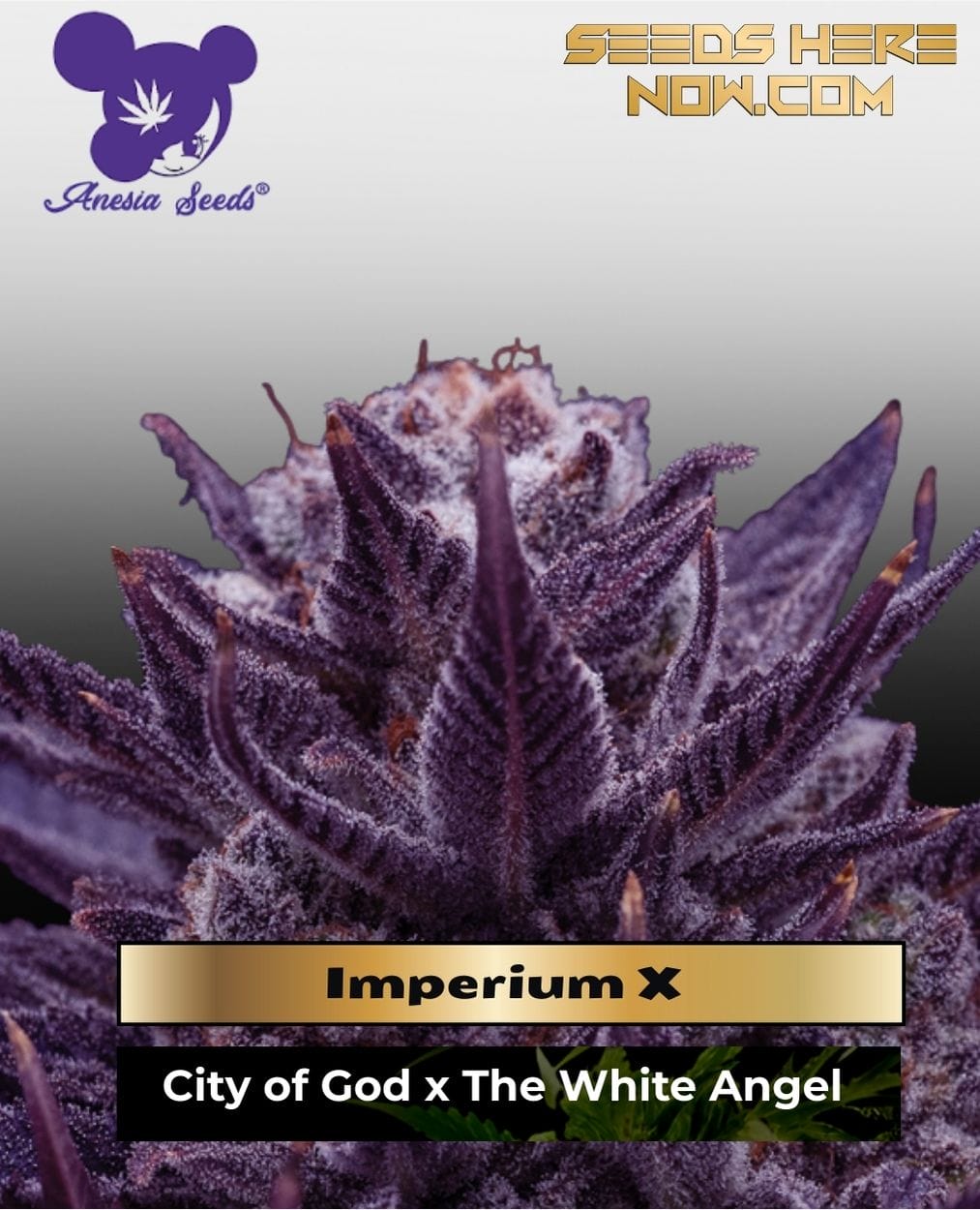 Imperium X stacks the deck: (City of God x The White Angel) hit with Future #1. From Future #1 you get rocket fuel potency, fast resin build, and that upright sativa frame that loves a net. City of God adds tropical bite and vigor. The White Angel smooths the edges, tightening internodes and polishing the bag appeal.