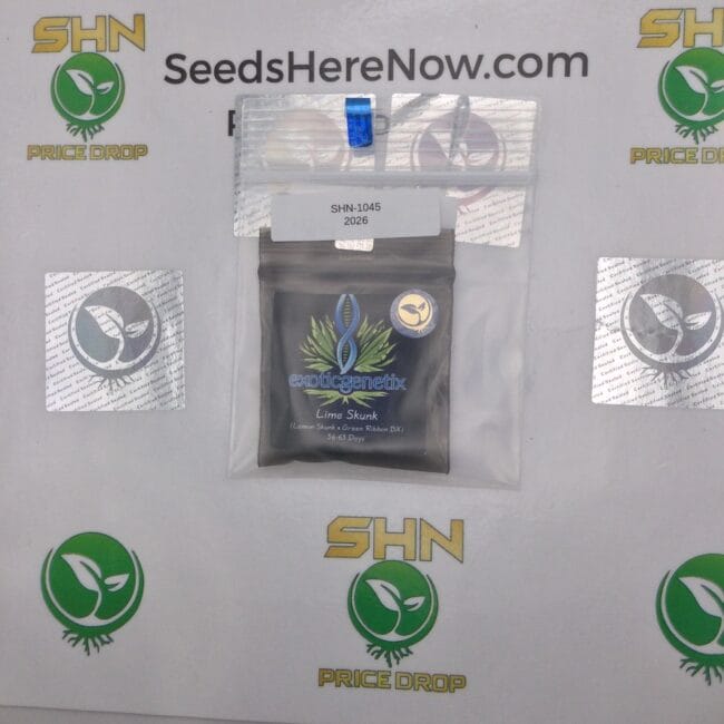 Exotic Genetix is a Pacific Northwest breeding institution that built one of the most collected genetics catalogs in modern cannabis. Their approach to citrus crosses was precise | identifying and selecting for sharp, true-fruit terpene profiles rather than generic lemon or lime approximations. Lime Skunk reflects that precision: a targeted cross with a clear flavor goal and the structural discipline EG is known for. Their lots at Seeds Here Now drew consistent collector interest across multiple collector market cycles.