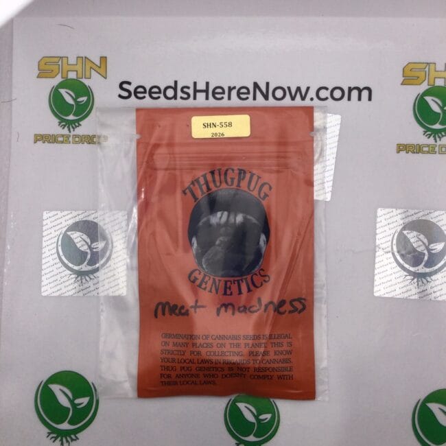 Thug Pug Genetics built the Meat series as a parallel thread to the broader Breath family—sharing the Mendo Breath foundation but incorporating selections that pushed the terpene profile toward savory, meaty, and fermented-gas territory. Meat Madness represents the outer edge of that exploration. The Meat Sprinkles and related Meat-family entries in the TPG vault catalog at Seeds Here Now give you a reference point for how Gromer developed this lineage across multiple generations.
