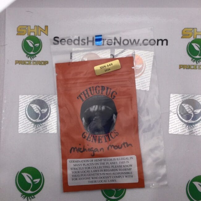 Michigan Mouth stacks two Mendo Breath-influenced lines on top of each other and lets them fight it out. Cherry Pie Breath brings the cherry and Pie-family sweetness; Mendo Breath adds its classic dense, sweet-gas OGKB base. The result is a cross that previous collector runs here have cleared at $150—legitimate collector demand for a pack that never made it into wide circulation. Climate-controlled, Limited stock—when it's gone, it's gone.