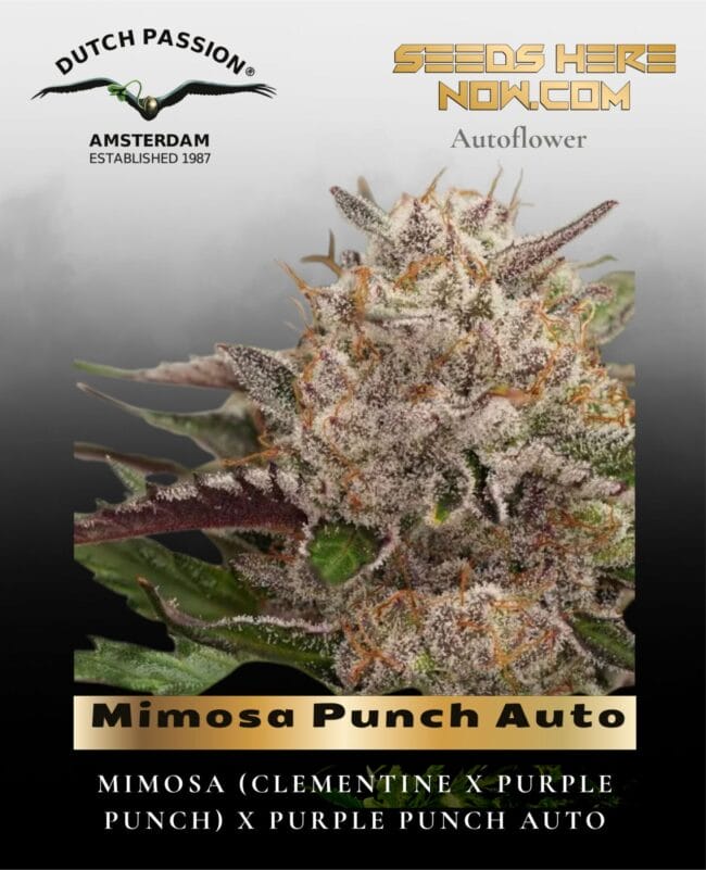The genetic blend of Mimosa (Clementine X Purple Punch) and Purple Punch Auto imparts a rich resin production and a robust flowering pattern. These genetics ensure a resilient structure that supports its plentiful yield and terpene-rich profile.