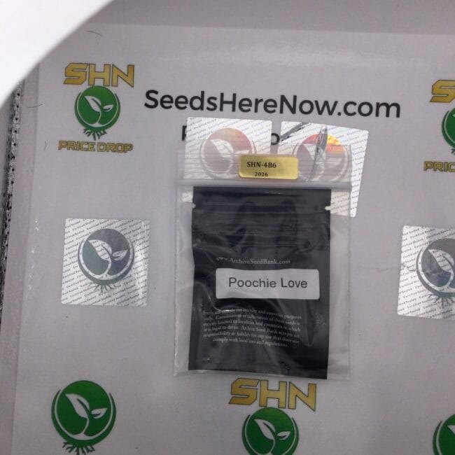 The Pacific Northwest Dogshit clone is exactly what it sounds like: a Pacific Northwest strain named for a terpene profile that's been described as fecal, sulfuric, and earthy in a way that either attracts or repels immediately. No in-between. Archive crossed it against Face Off OG BX1—giving one of the most challenging terpene profiles in the PNW underground a compact OG structure to grow in. Poochie Love is a collector pack for people who understand that "smells bad" in cannabis usually means "smells amazing once you know what you're doing." sealed. Limited stock—when it's gone, it's gone.