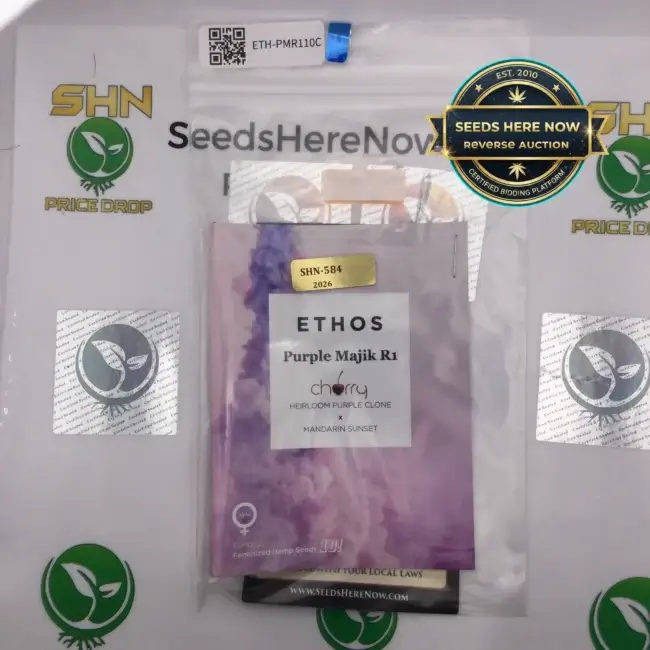 This vault release represents a rare chance to grab authentic Ethos Genetics stock that has been held in our private collection. When you buy Purple Majik R1 from Seeds Here Now, you are getting seeds that have been stored properly and handled with care. We have carried Ethos for years and know their lines inside and out. Once these sell, there will be no restock.