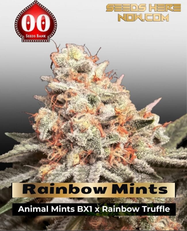 The breeder hasn’t publicly listed the exact parents. Here’s what matters: Rainbow Mints behaves like a modern mint-forward indica cross built for resin, structure, and speed. 00 Seeds leans on proven stock, then stabilizes for uniformity and a predictable finish.