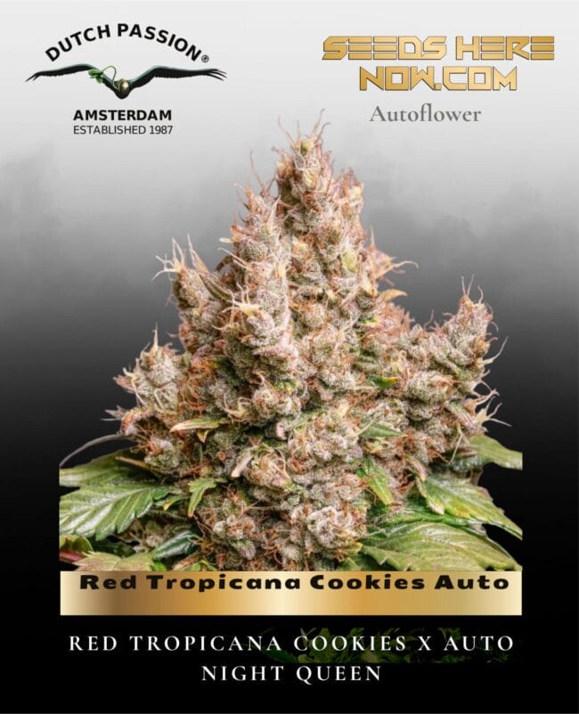 The combination of Red Tropicana Cookies and Auto Night Queen gives this strain its robust structure and notable terpene direction. Expect a rich resin production and a flowering behavior that complements both parent strains, providing a balanced growth experience.