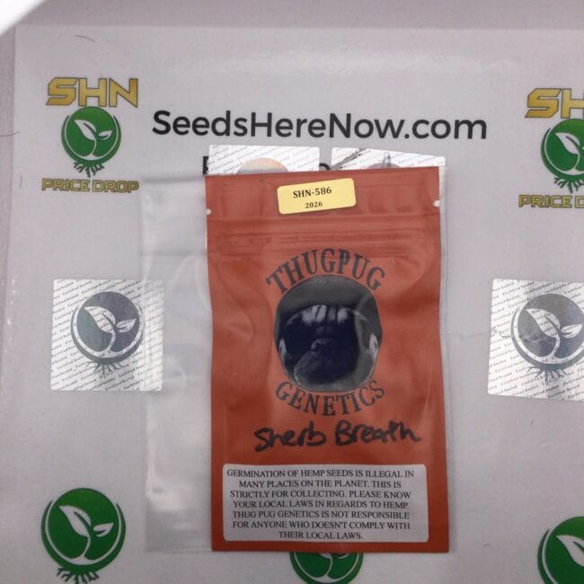 Thug Pug Genetics—Gromer Juana—explored the Sherbert direction at a time when most of the domestic market was focused on either straight OG crosses or the emerging Runtz wave. Sunset Sherbert had established purple pigmentation and candy terps as desirable, but most breeders were running it against Gelato or similar. Gromer ran it against Mendo Breath instead—bringing together two of the best indica-dominant, resin-heavy genetics of the era. The result was a cross that reads as accessible (sweet, colorful) but carries the weight of the OGKB line underneath. Our guide on our indica strains guide breaks down why Sherbert-based indica crosses became a pivot point in the 2016–2019 breeding era. The current Thug Pug catalog at Seeds Here Now includes more Sherbert-adjacent work.