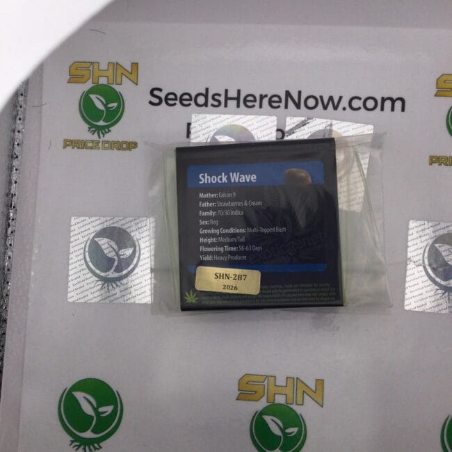 This pack has never left the collection. Shock Wave is an Exotic Genetix reg cross that builds creative contrast between Falcon 9's fuel-forward character and Strawberries & Cream's sweet berry expression. Lot SHN-287 was acquired directly and has been held in James Bean's personal vault under optimal conditions since.