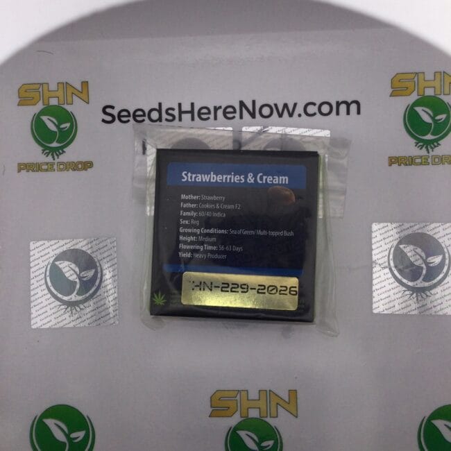 Exotic Genetix is a Pacific Northwest breeding institution that built Strawberries & Cream into one of the most recognized strains in American cannabis. It won awards, defined the EG aesthetic, and became a parent in Irish Cannonball, Jungle Fruit, Lip Smacker, Monkey Berries, Rainbow Reserve, Shock Wave, Strawberry Lemonade, and dozens more. Collecting the original is collecting the foundation. The reg seed in lot SHN-229 represents a direct pheno hunt through the strain that built an entire brand's identity.