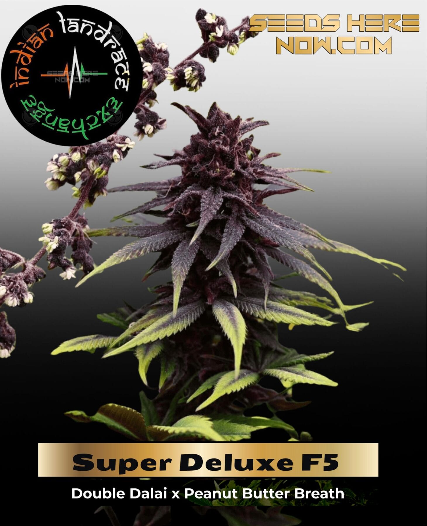 Lineage: Double Dalai × Peanut Butter Breath (photo F5). Incense-rose meets nutty dough, fast 56–60 day finish, above-average yields, and resin that can shine for hash.