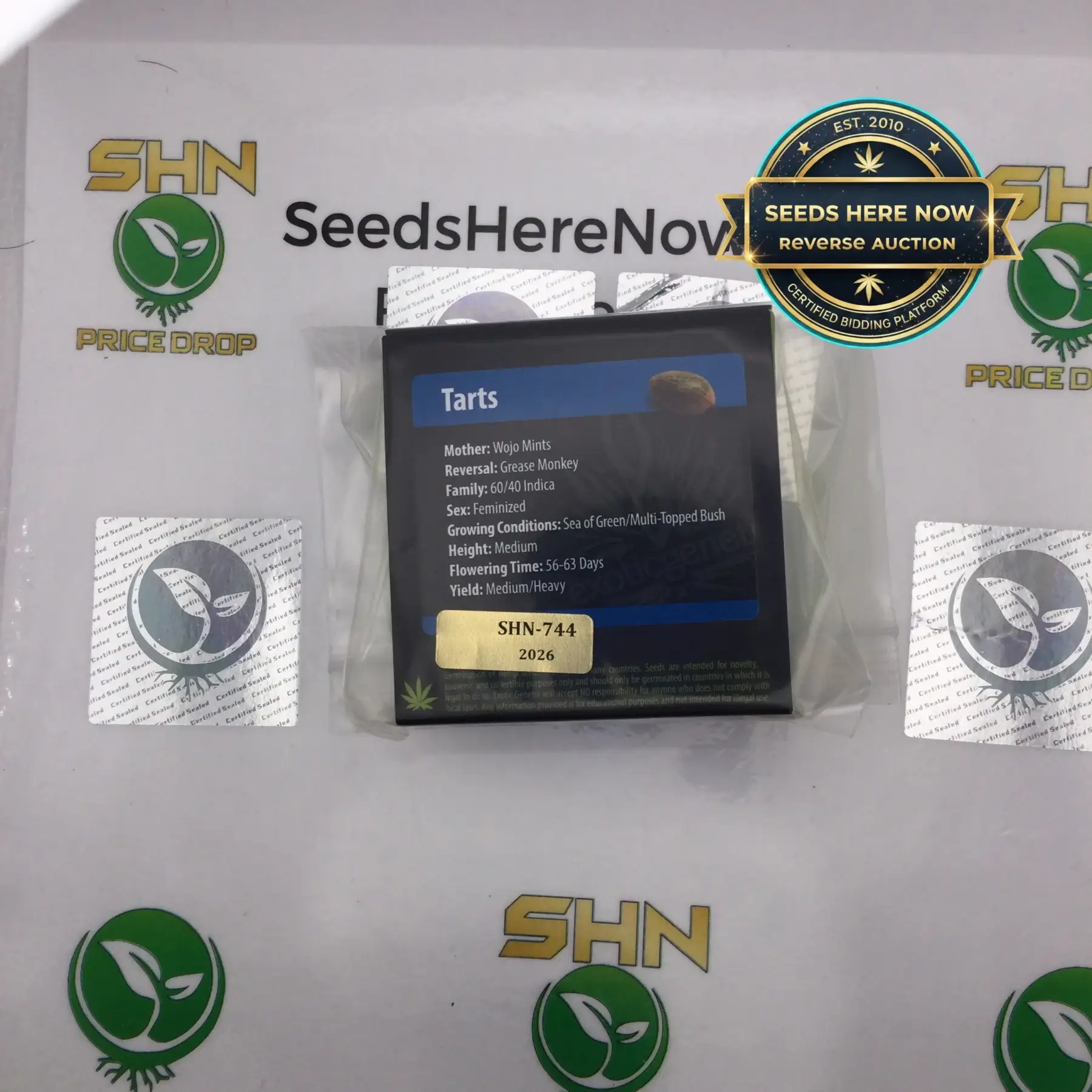 Tarts by exotic genetix comes straight from the Seeds Here Now personal vault—a collection carefully built over 15 years of sourcing and preserving the best cannabis genetics available. These seeds represent years of careful storage, trusted breeder relationships, and a deep passion for preserving exceptional cultivars. Now, we are opening the vault and making these rare packs available to growers everywhere.