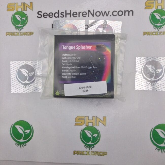 This pack has never left the collection. Tongue Splasher is an Exotic Genetix reg cross of Gushers and Rainbow Chip | tropical candy-gas meeting colorful sweet excellence. Lot SHN-1032 was acquired directly and has been stored in James Bean's personal vault under optimal conditions since.
